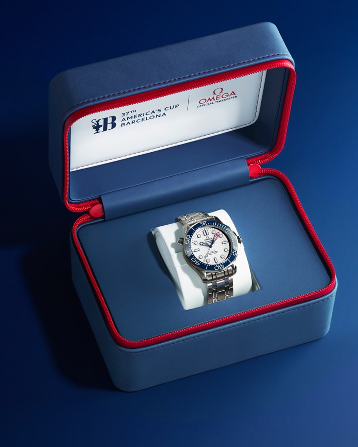 Per celebrare il suo ruolo come Cronometrista Ufficiale della 37a edizione dell’America’s Cup, OMEGA ha realizzato questo straordinario Seamaster Diver 300M con scala a tema regata e fondello commemorativo.