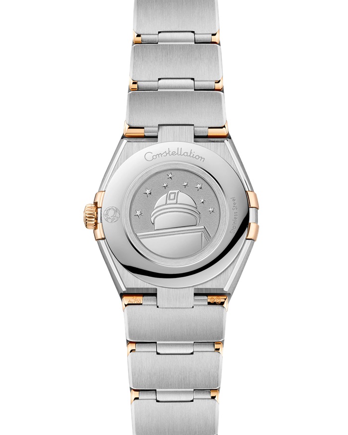 L’orologio presenta una cassa da 25 mm corredata da un bracciale “Mono Rang” in acciaio inossidabile e oro giallo 18K e integra molte delle caratteristiche distintive della linea Constellation, come le griffe lucide, le sfaccettature a mezzaluna e la lunetta tempestata di diamanti.