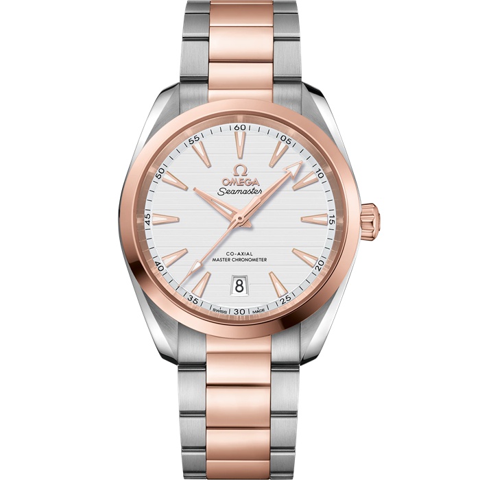 Il Seamaster Aqua Terra è un eccezionale tributo alla ricca tradizione marina di OMEGA. In questo modello da 38 mm, la cassa simmetrica è realizzata in oro Sedna™ 18K e acciaio inossidabile, e il fondello sfoggia un design con bordo ondulato.
