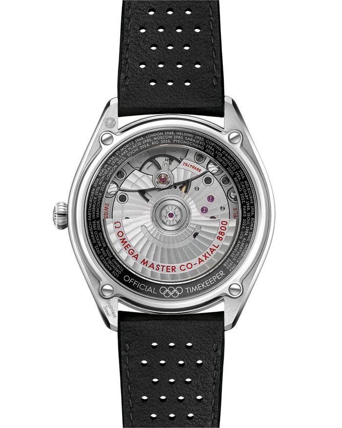 Sul fondello è presente un anello in alluminio nero anodizzato con tutte le città e le date in cui si sono svolti i Giochi Olimpici cronometrati da OMEGA: da Los Angeles 1932 a Los Angeles 2028.