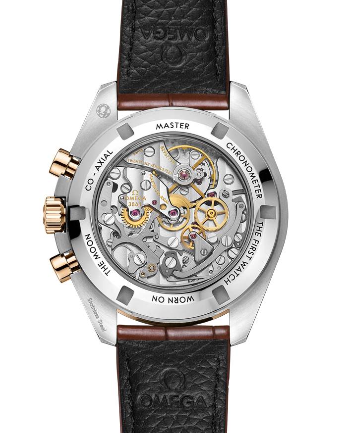 Questo modello bicolore da 42 mm in acciaio inossidabile e oro Moonshine™ 18K presenta quadrante e fondello in vetro zaffiro. Ispirato alla quarta generazione di Speedmaster indossata sulla Luna, sfoggia una cassa asimmetrica con l’anello della lunetta in ceramica nera e il celebre “Dot over 90” in Ceragold™ OMEGA sulla scala tachimetrica.